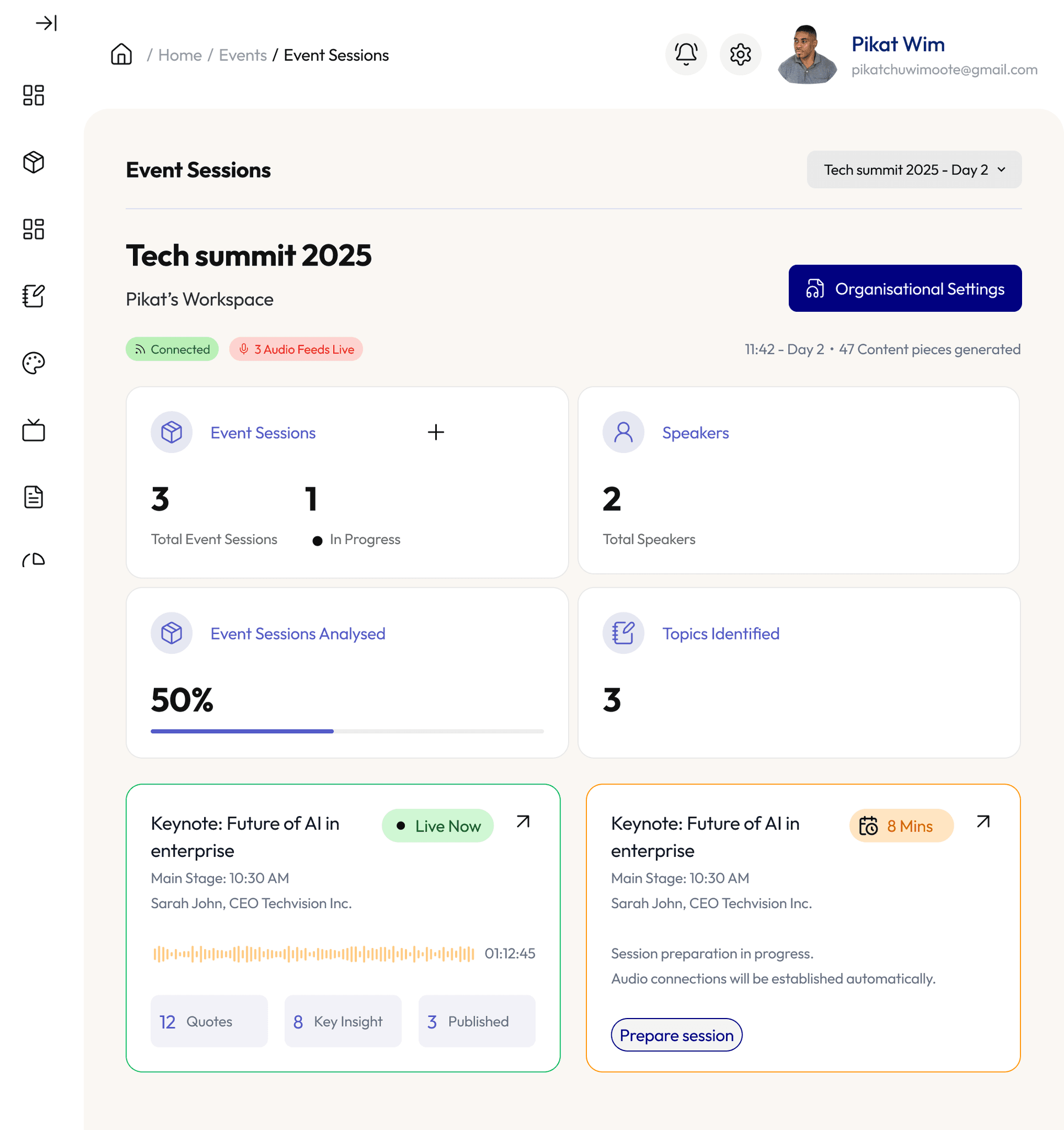 Stop losing valuable insights from your conference sessions. Turn every speaker moment into engaging content that extends your event's impact and reach.